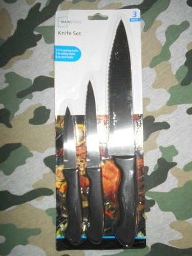 Mainstays 3 Pc Kitchen Knife Set 1 Pairing 1 Utility 1 Chef Knife Ebay